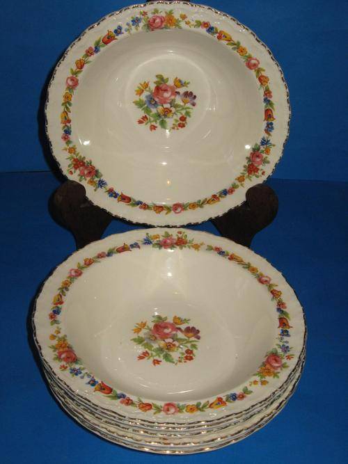 Set of Six Grindley Creampetal Sweet Bowls. About 16cm in diameter and weighing over 1kg alone. Slight rubbing, use and crazing.