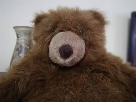 Long, brown super soft fur and plastic eyes and puffy nose.