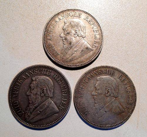 KAIZER SAGroup Lot of 3 x 1896 ZAR Kruger Silver HalfCrown (2.5S)Digital pictures of the actual items you will receiveCirculated coins with associated wear and tear, 2 coins are in VF condition, the coin pictured bottom right is in Fine condition...Total Weight of group = 42.3grams; Total silver 0.925(39.234grams)**Bid to win the entire group lot of 3 coins**