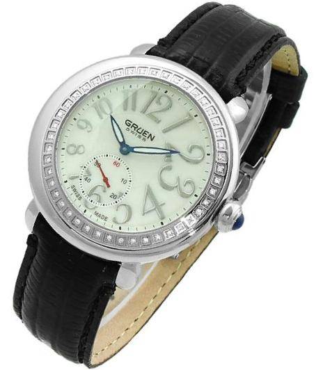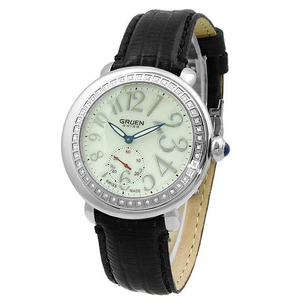 AUTHENTIC NEW GRUEN SWISS SILVER 45 GENUINE DIAMONDS MOTHER OF PEARL LEATHER WATCH GSS25-01