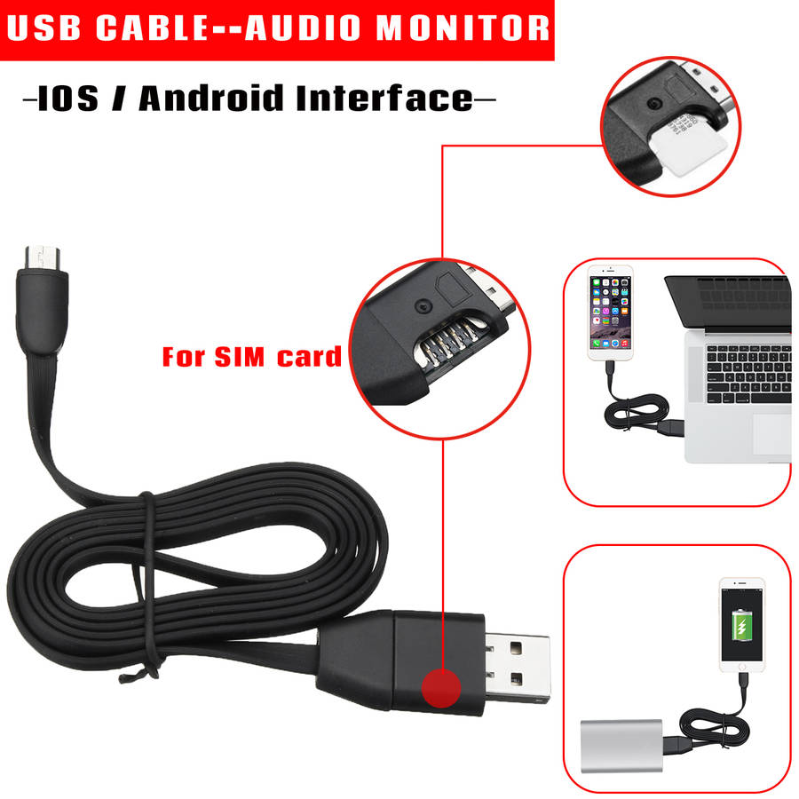 GSM SIM Hidden USB Cable Audio Voice Monitor Listening Device for IOS/Android
