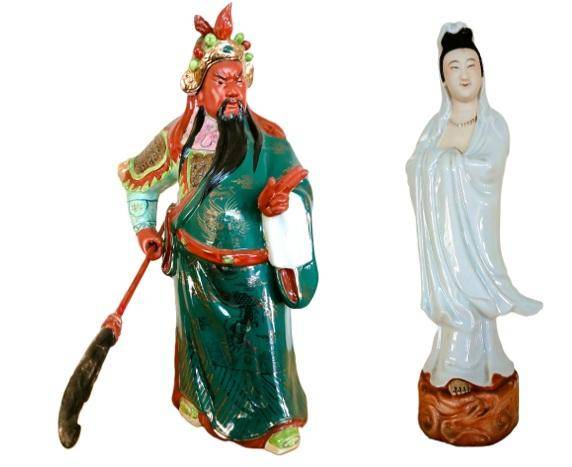 Chinese porcelain warrior statue, Guan Di figurine, Chinese god of war, Shiwan pottery figure, vintage Chinese export ceramic, Shiwan Guan Yu, Guan Gong statue, Chinese martial deity, antique Chinese spiritual figure, collectible Chinese warrior, Asian decor statue, mid-century Chinese art, Guan Yu vintage sculpture, Shiwan ceramic art, LouzAttic Chinese collection