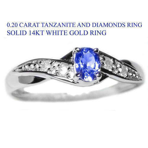 Guaranteed 100% REAL NATURAL, SOLID 14KT WHITE GOLD 0.20CT NATURAL TANZANITE AND DIAMOND RING
