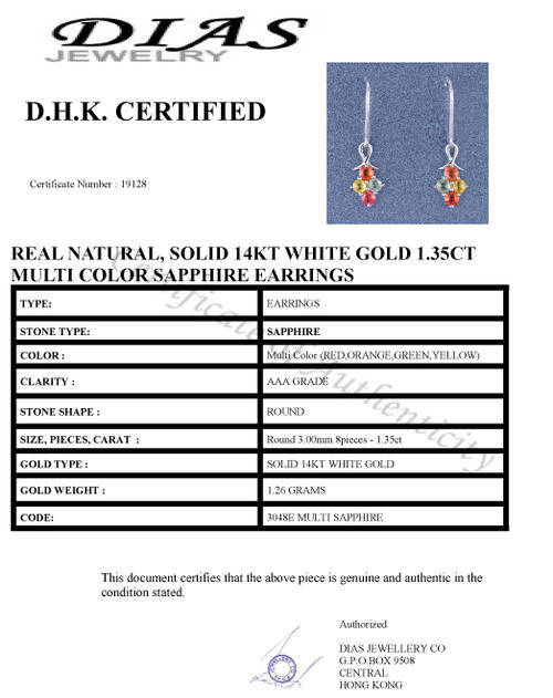 Guaranteed 100% REAL NATURAL, SOLID 14KT WHITE GOLD 1.35CT MULTI COLOR SAPPHIRE EARRINGS