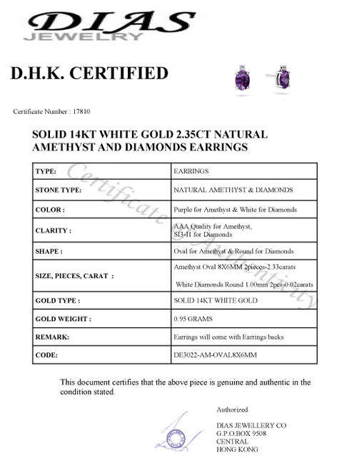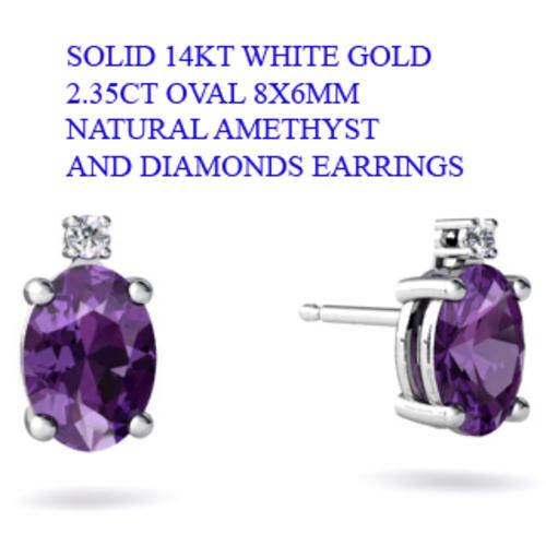 Guaranteed 100% REAL NATURAL, SOLID 14KT WHITE GOLD 2.35CT NATURAL AMETHYST AND DIAMONDS EARRINGS