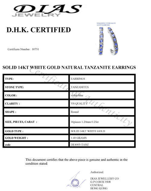Guaranteed 100% REAL NATURAL, SOLID 14KT WHITE GOLD NATURAL 0.25CT TANZANITE EARRINGS