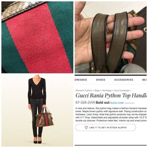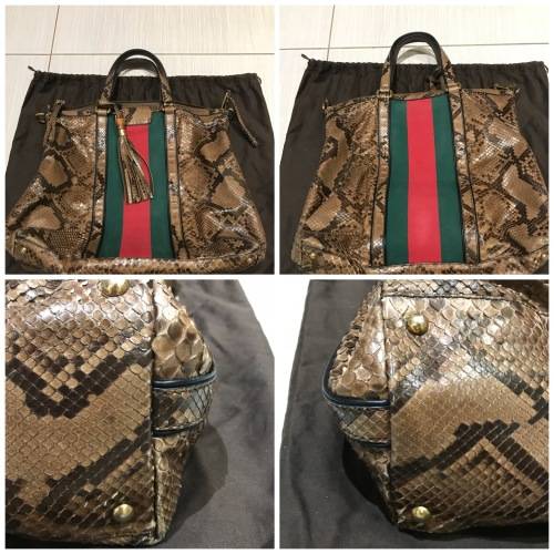 Brand new. Never carried! Still in original packaging! Exclusive Python with traditional red and green Gucci stripes on front and back.