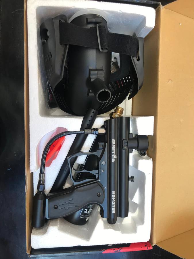 Guerilla Romster Kit Includes the Gun with a Gas Bottle, Mask and toolkit. Items are all in great condition and haven't been used once, This kit is great for starting out or even intermediate players due to is simplicity and Great handling, easy to play with and also great durability. So overall this kit isn't one you want to miss out on.
