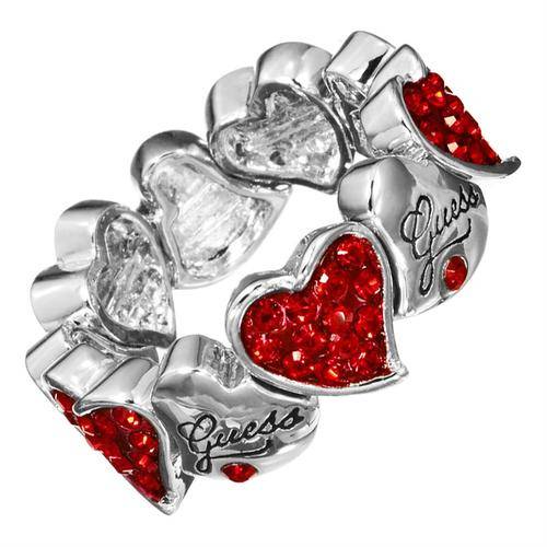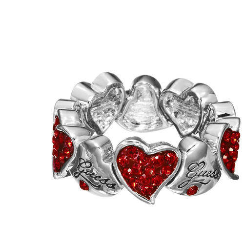 Guess Hearts Stretch Ring Crested with Red Jewellery Stones