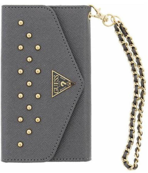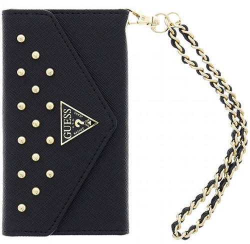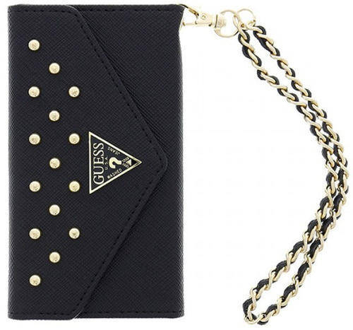 GUESS Studded clutch wallet elegant and modern collection for iPhone 6. pouch with small silver studs match the GUESS logo in silver metal. Its refined ergonomics and trendy style make this a luxury accessory. Your smartphone snaps easily into the pocket Guess for a perfect fit and optimal protection. Slots are provided to be able to slide your credit cards.