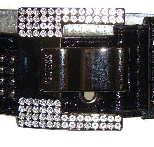 Synthetic face & back. Black in colour, Silver inner lining, Silver Guess engraved rhinestone buckle - beautiful!
