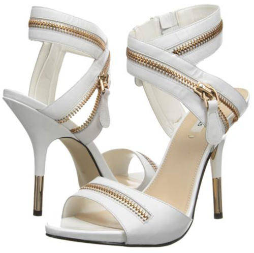 The Guess 'Caresse' heel features cognac and white straps with gold, buckle detailing. A perfect light and strappy shoe for the summer