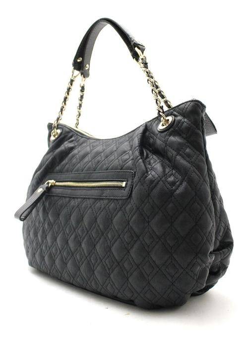 Guess Women's Liane Hayden Satchel Bag [VG480809] With throwback prints and fashion-forward patterns, Guess Handbags caters to all forms of fashionistas and stylish women. Material: 100% polyurethane Handles/Strap Type: Double top handles with 8" drop Closure Type: Top zip Accents: Quilted pattern, gold tone hardware, chain with charms detail Back zip pocket Signature Details: Cut-out signature mark Interior Features: Printed lining, slip & zip pockets