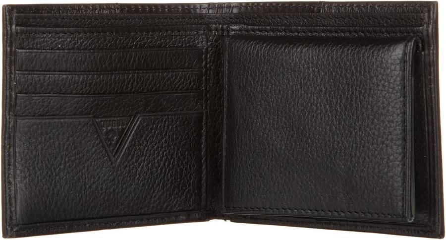 Guess Monterrey passcase made out of cowhide leather with double bill compartments, four credit card pockets, removable passcase, extra storage compartments
