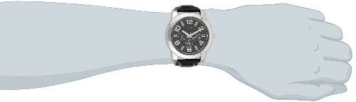 Stainless steel case. Leather strap. Black dial. Chronograph. Date. Water resistant 50 meters. case 44mm.