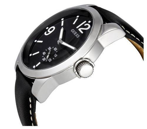 GUESS Men's Zoom Black Leather Band, Black Round Dial Watch W10248G1