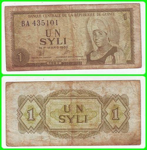 GUINEA - 1981 - 1 SYLI - PIC# 20a - F/VF NOTE - BA435101