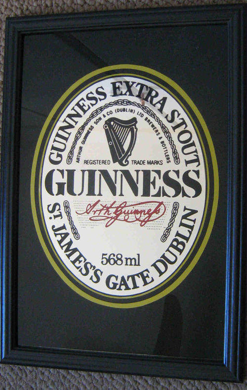 Guinness framed bar mirror. 32 x 22cm. Postage R45.00 SA post office.