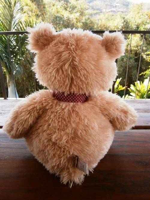 This measures about 45 cm tall from head to feet. Very soft plush Bandy has black beaded eyes and a brown puffy nose. It has a few bean pellets in the rump area to help it sit up well.