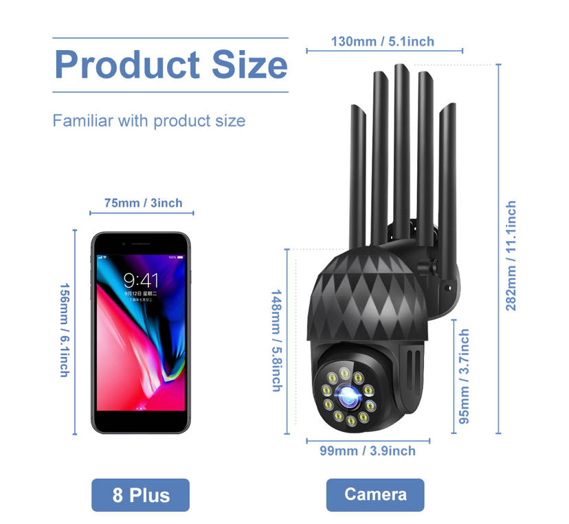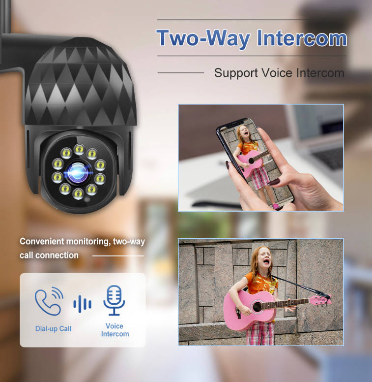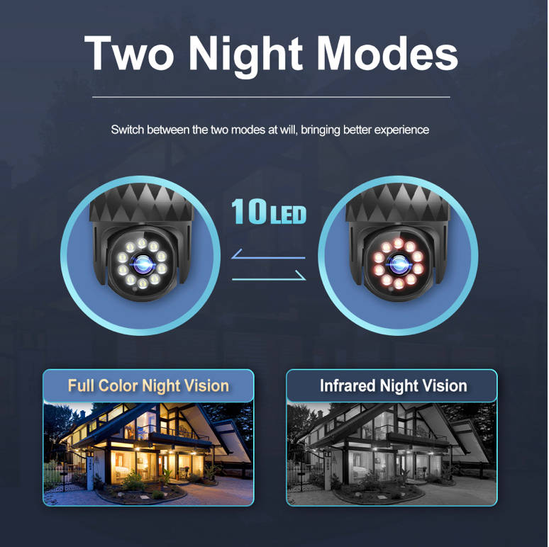 - Intelligent double light night vision: infrared distance of 30 meters, white light distance of 20 meters.