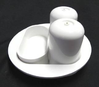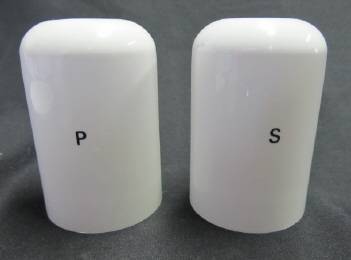 A plastic salt and pepper set, made in Italy by Guzzini. Condition good. Height (salt & pepper shakers) 75 mm.
