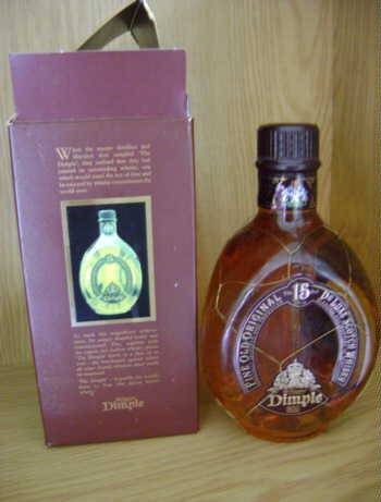The bottle is fullly sealed with screw cap still wired, although in two places near the bottom the wires are broken. The neck label reads " Selected Blended & Distilled by J. Haig & Co. Edinburgh, Scotland. The front u-shaped label reads " Fine Old Original Specially Selected and Produced - Yrs 15 Old, 375ml - De Luxe Scotch Whisky Blanded and Bottled in Scotland. The lower label reads " The Original Dimple -B26." Embossed on the bottom of the bottle is what appears to be " 50677 - 5 - 8 and a ,mark I am unable to see properly, appears to be something 6. The box is approximately 175mm high x 95mm x 90mm. On the bottom of the xox is a number 819847. The bottle is slightly under 170mm tall and 100mm each side of the triangle . Weight is approximately 750grams.