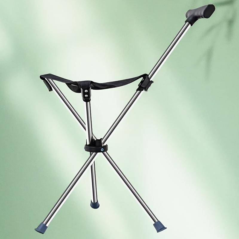 1pc 2-in-1 Collapsible Cane & Stool - 149.69KG Weight Capacity, Foldable Travel Cane with Locking Mechanism for Hiking, Camping, Outdoor Activities - Portable Compact Design