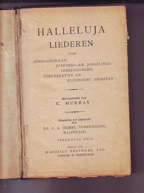 Hallelluja liederen voor Zondagscholen,stevers en jongelings conferenties en bijzondere diensten bijeengebacht door C. Murray