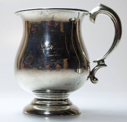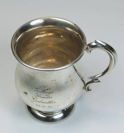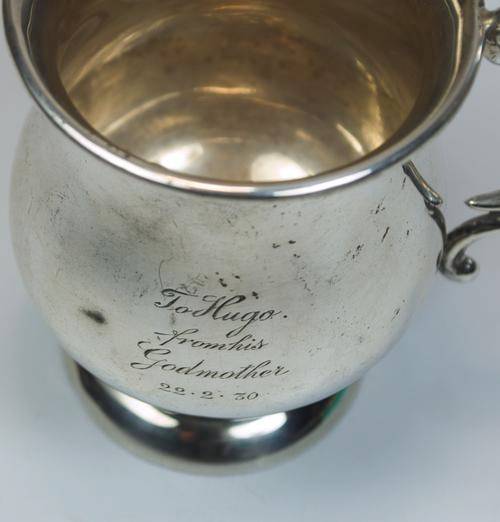 Hallmarked silver christening cup - 'To Hugo from his Godmother 22.2.30' - weight is 57 grams