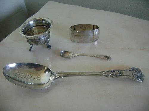 HALLMARKED SILVER LOT - KINGS PATTERN SPOON ECT. ( 163 GRAMS OF SILVER)!!!!
