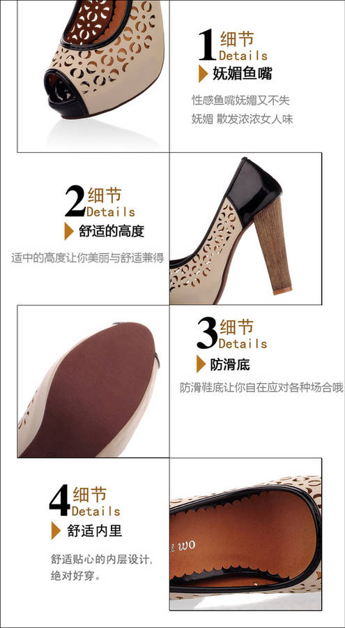 Hallowed rough high heel sandal shoes, 2 colors, size 2.5-6