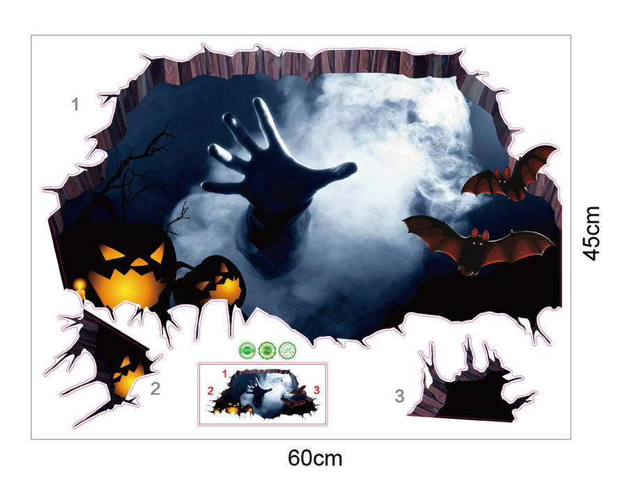 Halloween 3D Floor Sticker Bedroom Living Room Haunted House Decor Wall Sticker