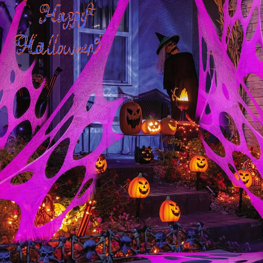 1pc Halloween Spider Web Decoration - Neon Glow under UV/Blacklight, Easy DIY Cu
