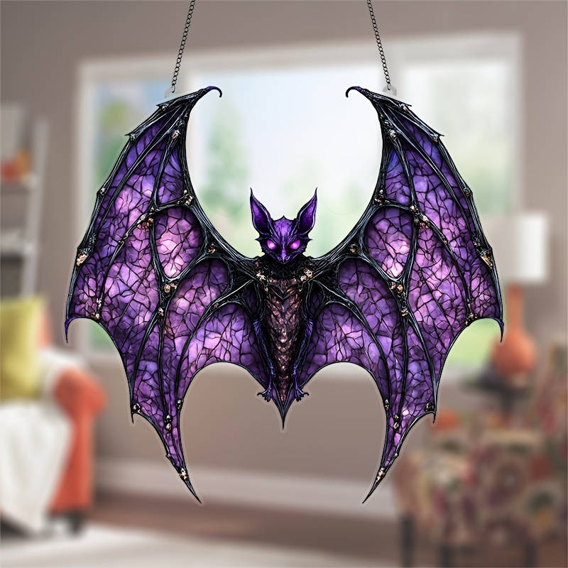 2D Flat, 1pc 2D Acrylic Bat Wall Hanging Decor - Vibrant Purple & Black Bat Wing