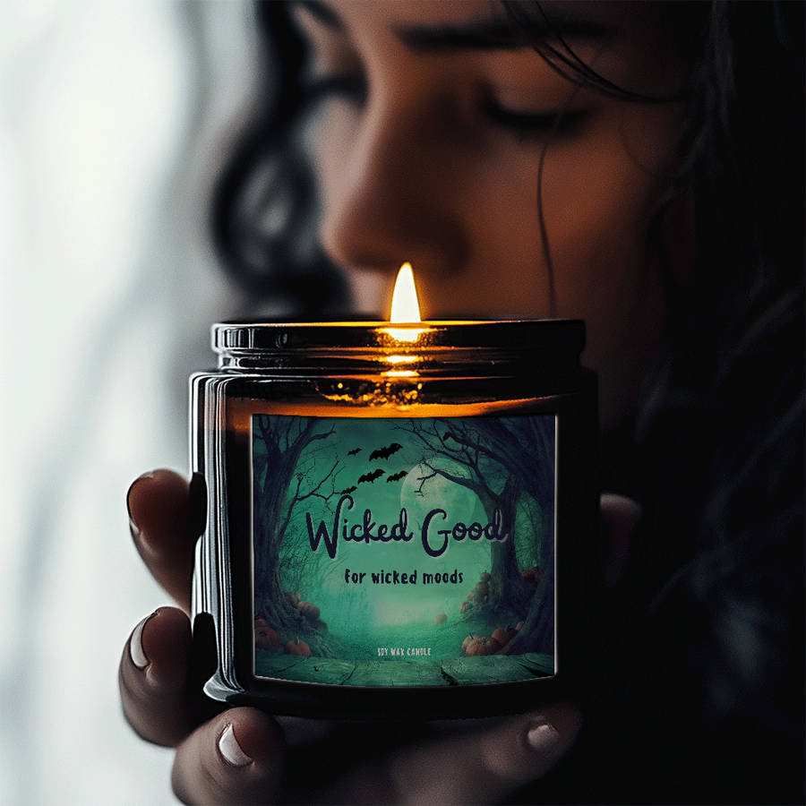 1pc Wicked Good Halloween Scented Candle - Spooky Forest Design with Bats & Full