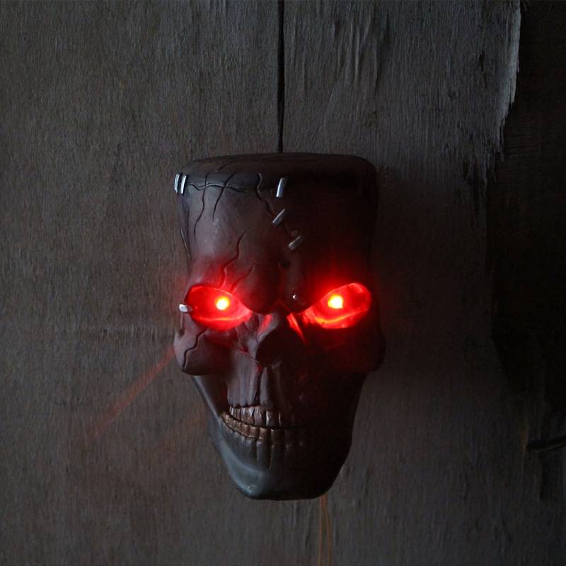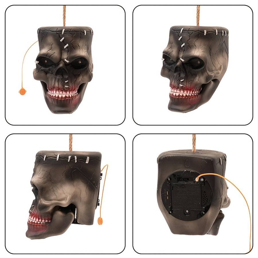 1pc Halloween Decoration, Electric Sensor Light-Up Talking Moving Skull Pendant