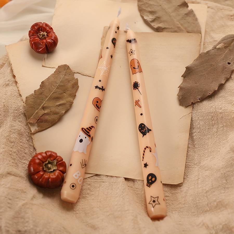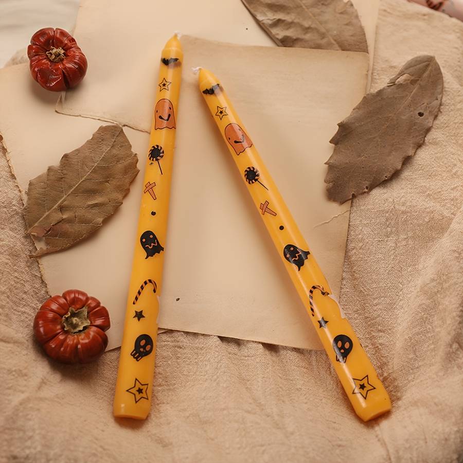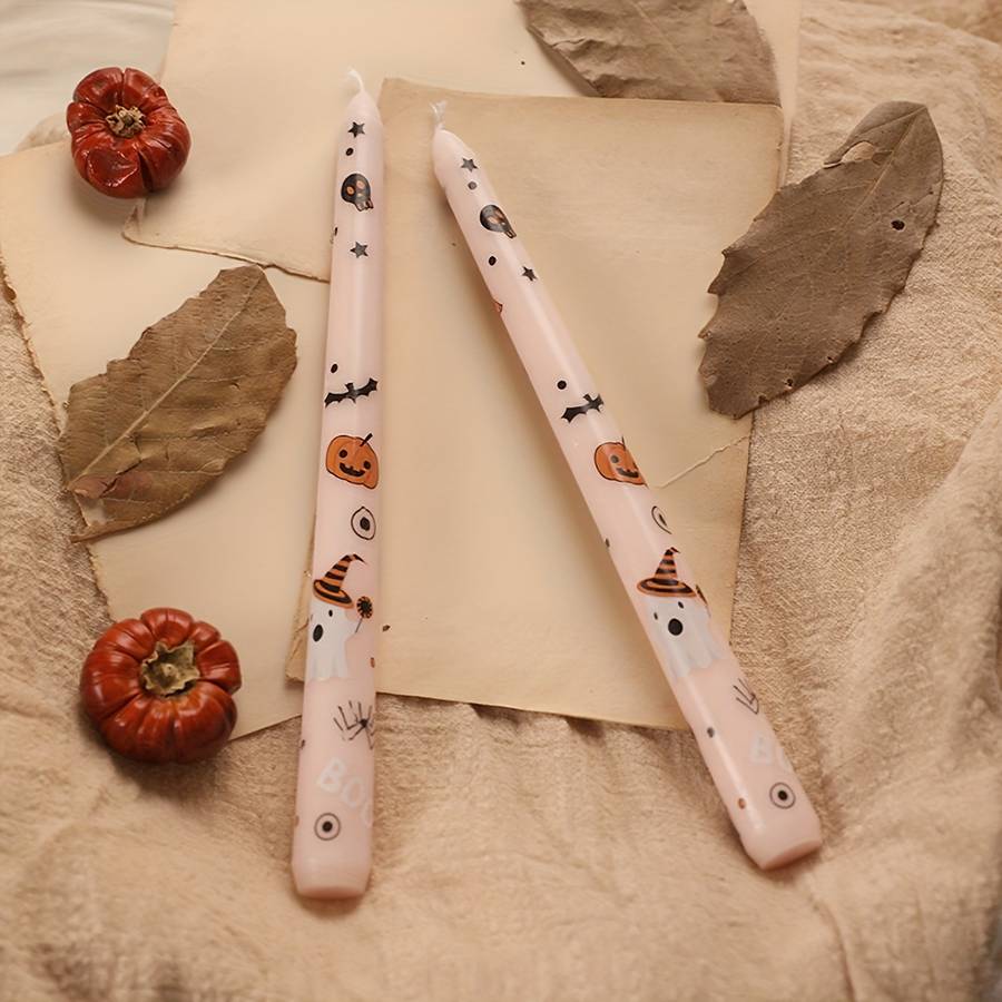 2pcs/Box 25.02cm Halloween Taper Candles DIY Hand Painted Skull, Pumpkin, Ghost