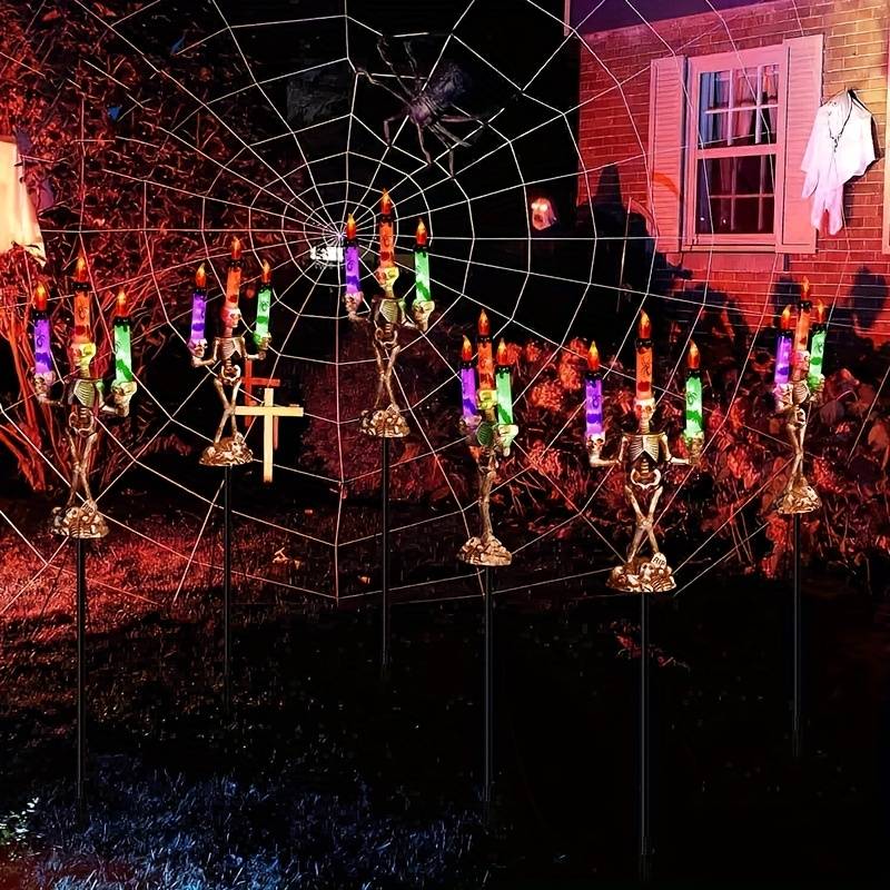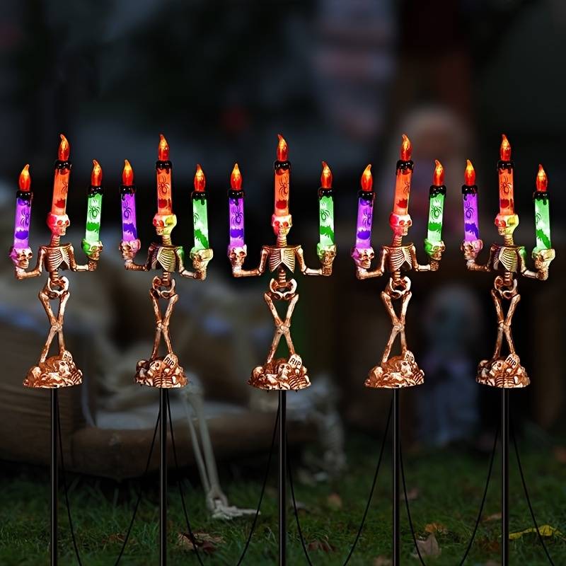 Solar-Powered Five-in-One Candle Hand Light with Colorful LED Skulls - Spooky Ou