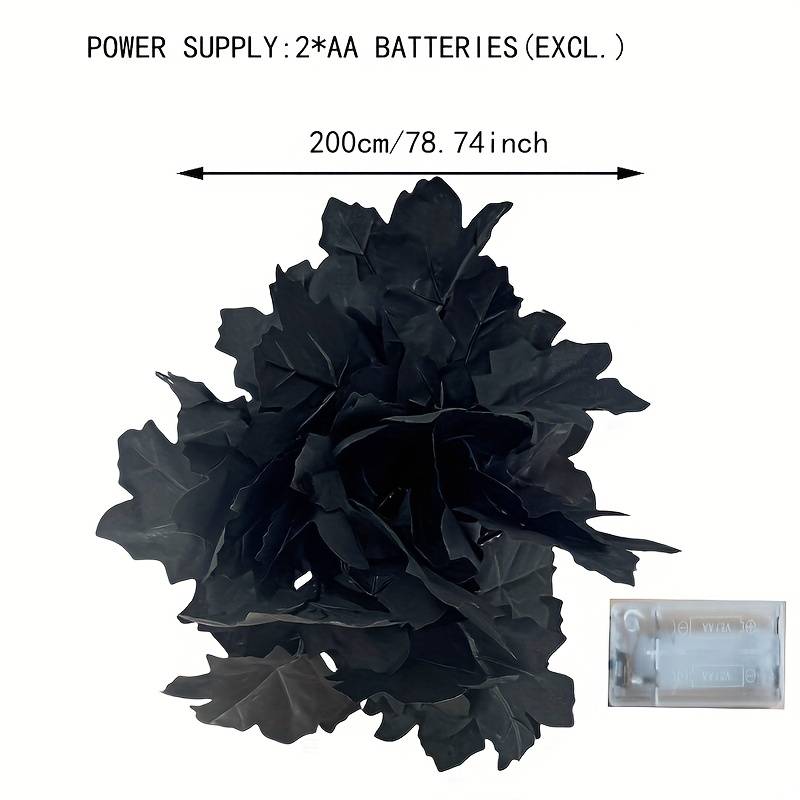 Halloween Decorations Color Warm Lighting color Warm Lighting Please refer to the specifications listed here. If there are any errors or questions, please contact the buyer. Thank you for your viewing. 1pc Black Maple Leaf Rattan String Lights - Battery-Powered Outdoor/Indoor Decor Material:Plastic Theme:Flowers Occasion:Halloween Metal Finish Type:Other Types Control Method:Switch Power Supply:Battery Powered (no Plug) Battery Properties:Without Battery