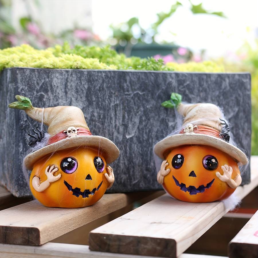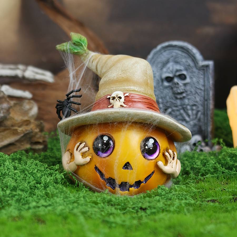 1pc Halloween Pumpkin Decoration with Skeleton Wizard Hat - Cute Jack-O'-Lantern