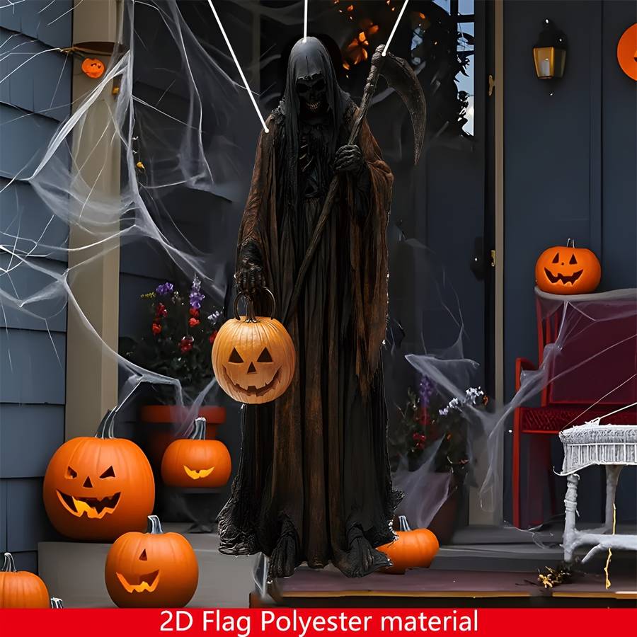 2D Door Banner, 1pc Halloween Horror Decoration - Red-Haired Skeleton with Scyth