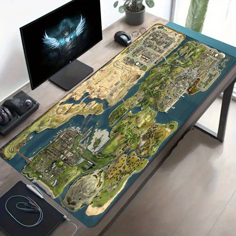 1 Extra-Large Gaming Mouse Pad with Open World Map Design, Non-Slip Washable Rub