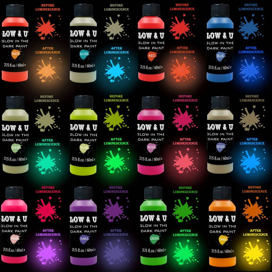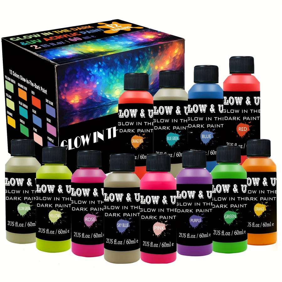 12 Bright Colors Glow in the Dark Acrylic Paint, 60ml/2oz Blacklight Neon Craft