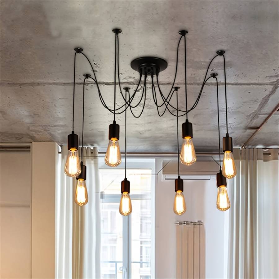 Vintage Industrial Steampunk Spider Chandelier - 8-Arm Pendant Light Fixture wit