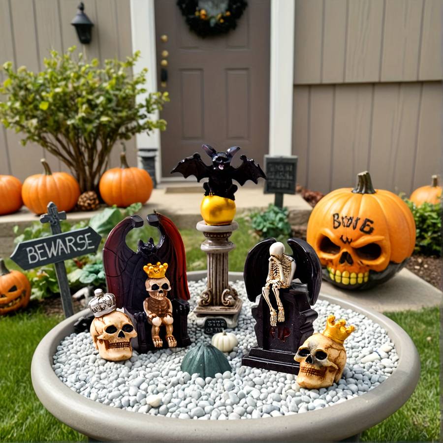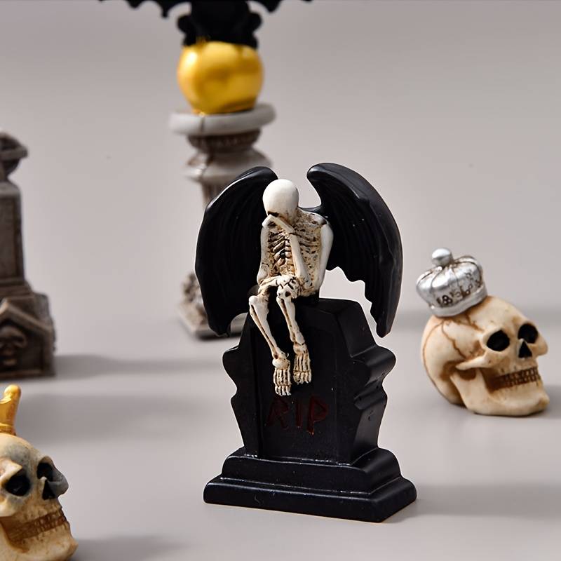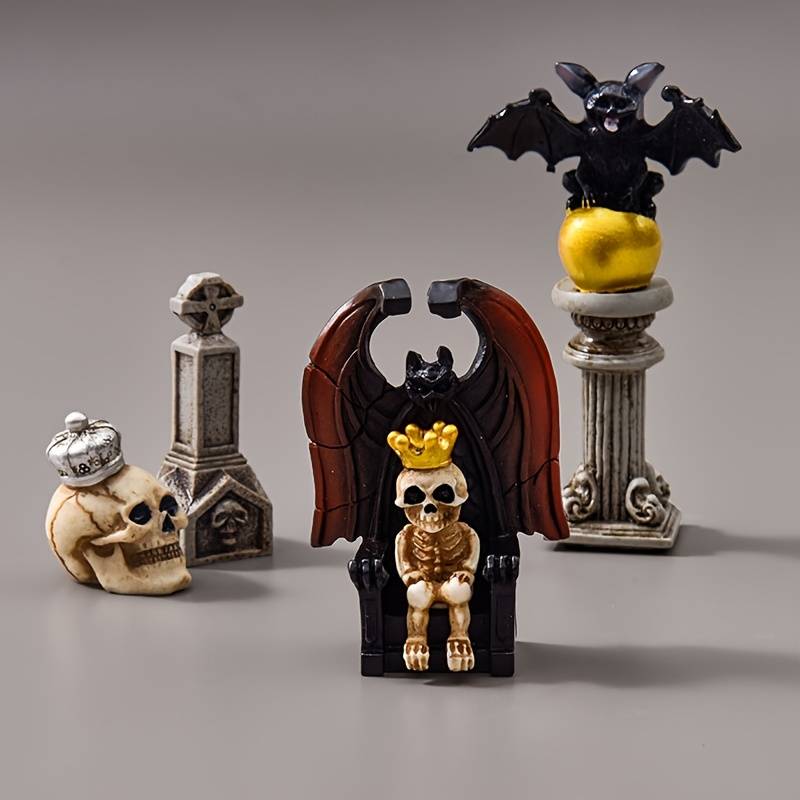13pcs Halloween-Themed Resin Figurines Set - Skeletons, Bats, Clowns, Ghost King