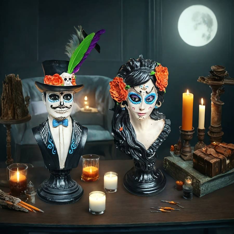 Resin material figurines of male and female ghosts wearing masks, suitable for H