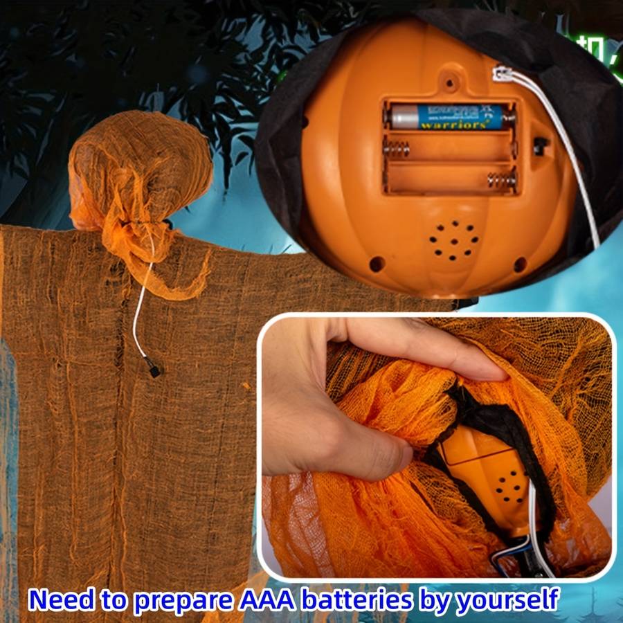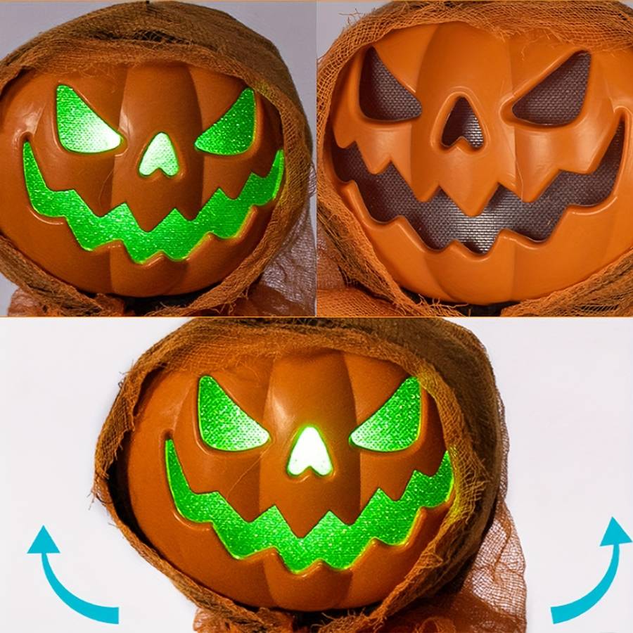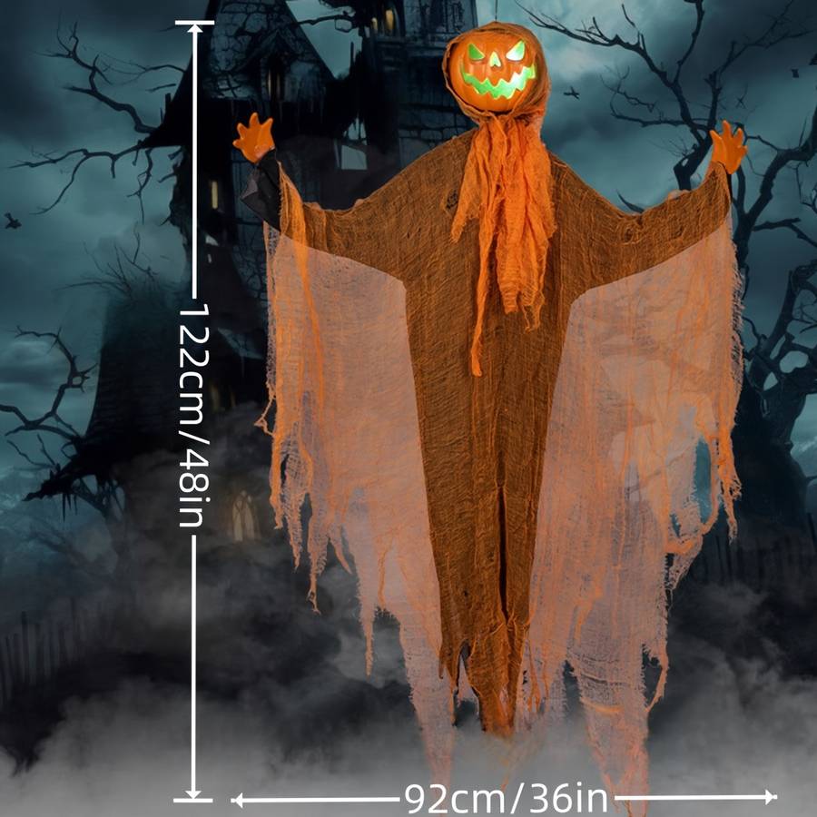 Spooky Halloween Pumpkin Hanging Decoration with Glowing Green Eyes - Battery-Po