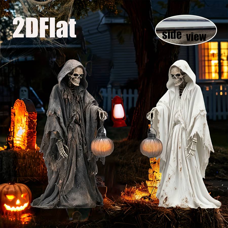 2D Flat, 2 Sets of Horror Gothic Skull Lantern Garden Stake Decorations, Outdoor