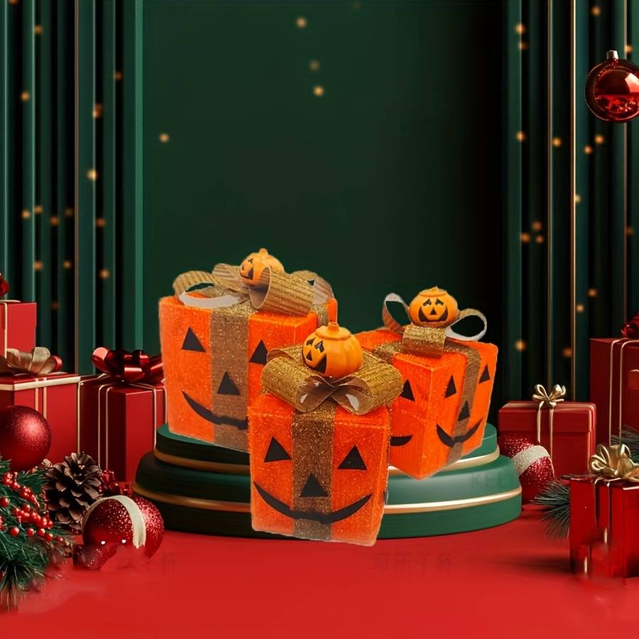 Halloween Glowing Pumpkin Gift Box Set of 3, Featuring 48 LED lights, this lumin