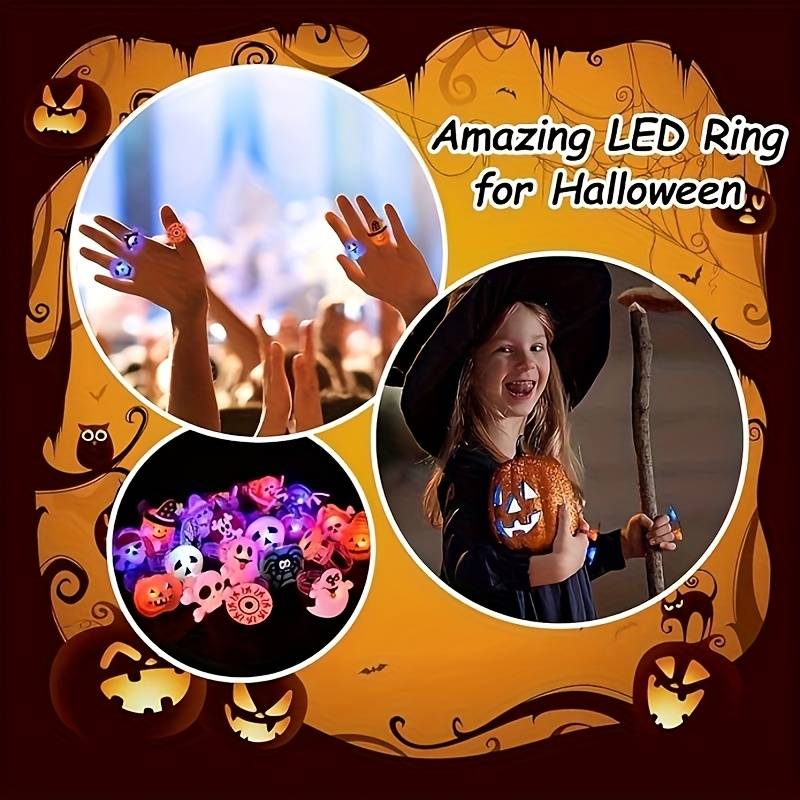 50 LED Glow Rings for Kids Halloween Party Favors - Colorful, Battery-Powered (B